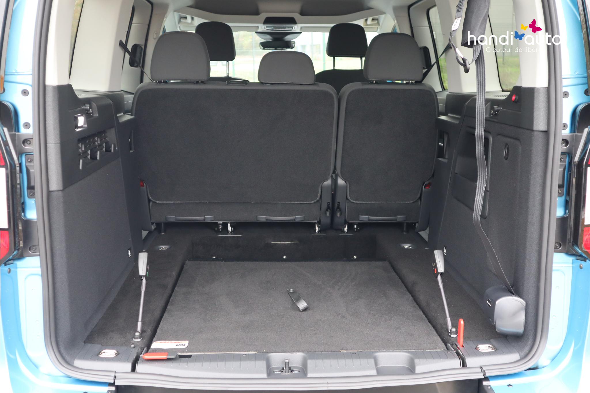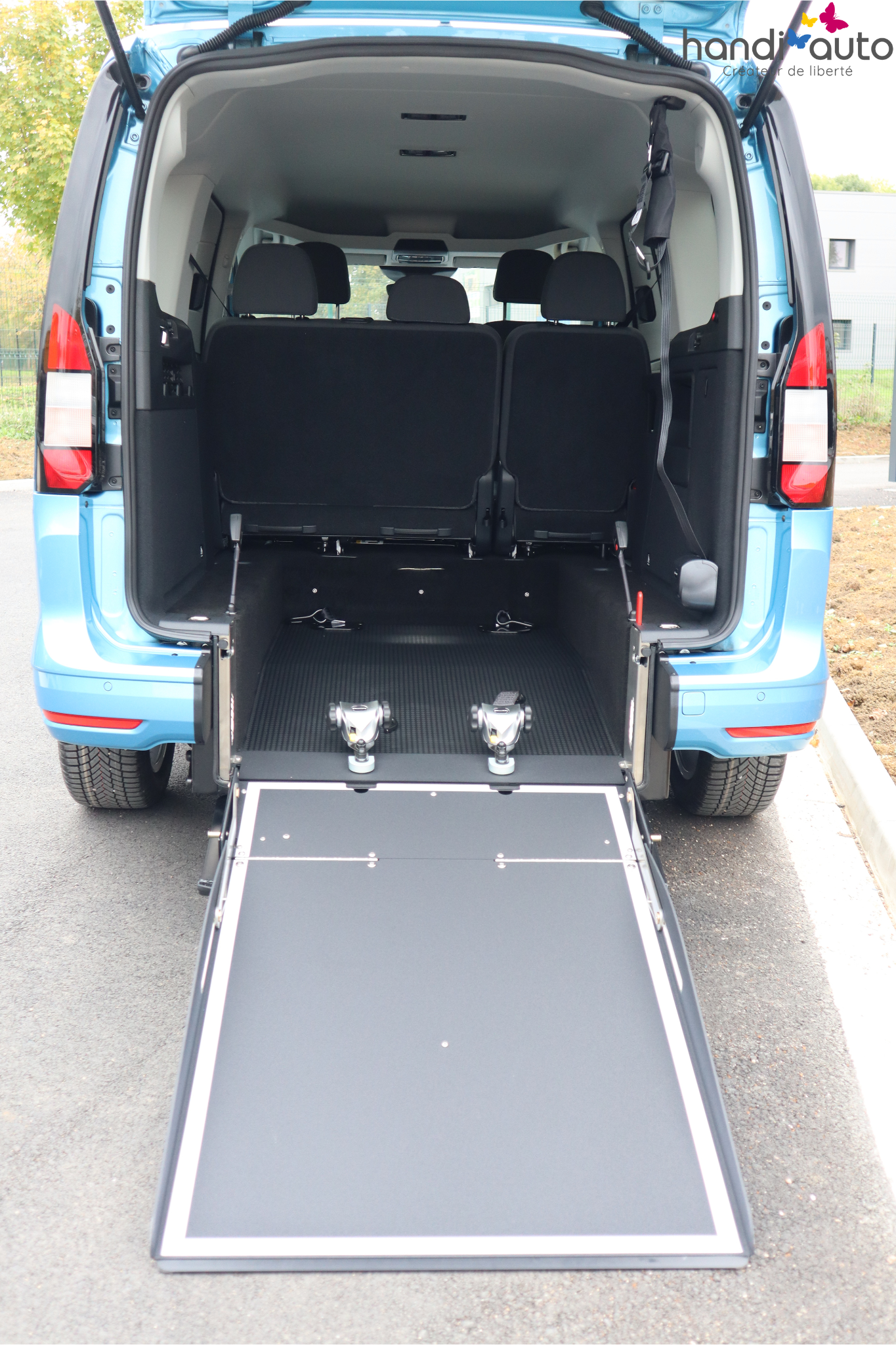 Un décaissement XXL permet d’installer confortablement la personne en fauteuil roulant au rang 2 au plus proche de son entourage. Les 2 sièges arrière sont démontables. Une rampe légère à replier, d’une capacité de charge de 80 kg est disponible au niveau du coffre.